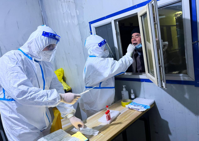 盛凱正在給村民們做核酸。(安迪爾鄉 供圖)