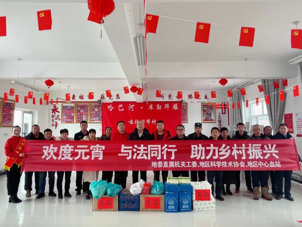 為豐富群眾文化生活,營造元宵佳節(jié)喜慶、祥和的節(jié)日氣氛,推動鄉(xiāng)村文明建設(shè),聚力鄉(xiāng)村振興,2月3日,阿勒泰地委直屬機(jī)關(guān)工委、地區(qū)科協(xié)和地區(qū)中心血站,在哈巴河縣庫勒拜鎮(zhèn)喀拉闊布村聯(lián)合開展“歡度元宵?與法同行 助力鄉(xiāng)村振興”主題活動。