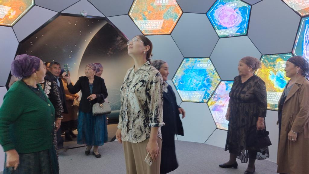 阿勒泰天文館是西北五省最大的專業(yè)性質(zhì)天文館,進(jìn)入序廳,抬頭仰望星空,讓人產(chǎn)生無限遐想和探索的欲望,星空下就是阿勒泰天文館的鎮(zhèn)館之寶——“阿勒泰之星”。在阿勒泰天文館(科技館)工作人員的指導(dǎo)下,大家參觀了“飛躍阿勒泰”“繽紛地球”“時空隧道”等多個特色展區(qū),講解員為大家詳細(xì)講解了天文和科技知識。“仰望天空”“日月地”“銀河畫卷”等一場場視覺沖擊,讓大家全景式地了解人類探索宇宙奧秘的漫漫征途,從古人的思考到近代天文學(xué)革命,再到當(dāng)今的科學(xué)成就都讓殘疾朋友們印象深刻,最讓人興奮的是4D電影和1:1比例的太空艙,沉浸式體驗(yàn)了疾馳的飛機(jī)和宇航員的太空生活,不禁讓人贊嘆祖國科技的強(qiáng)大。“這次參觀最讓我印象深的,不僅是科技發(fā)展給社會生活帶來的巨大改善,同時還有我們?nèi)祟悶閼?yīng)對共同的挑戰(zhàn)做出的探索和努力。在今后的生活中,我要自覺做新時代鑄牢中華民族共同體意識的踐行者、守護(hù)者、促進(jìn)者、示范者。”解放路社區(qū)退休黨員張小龍說。