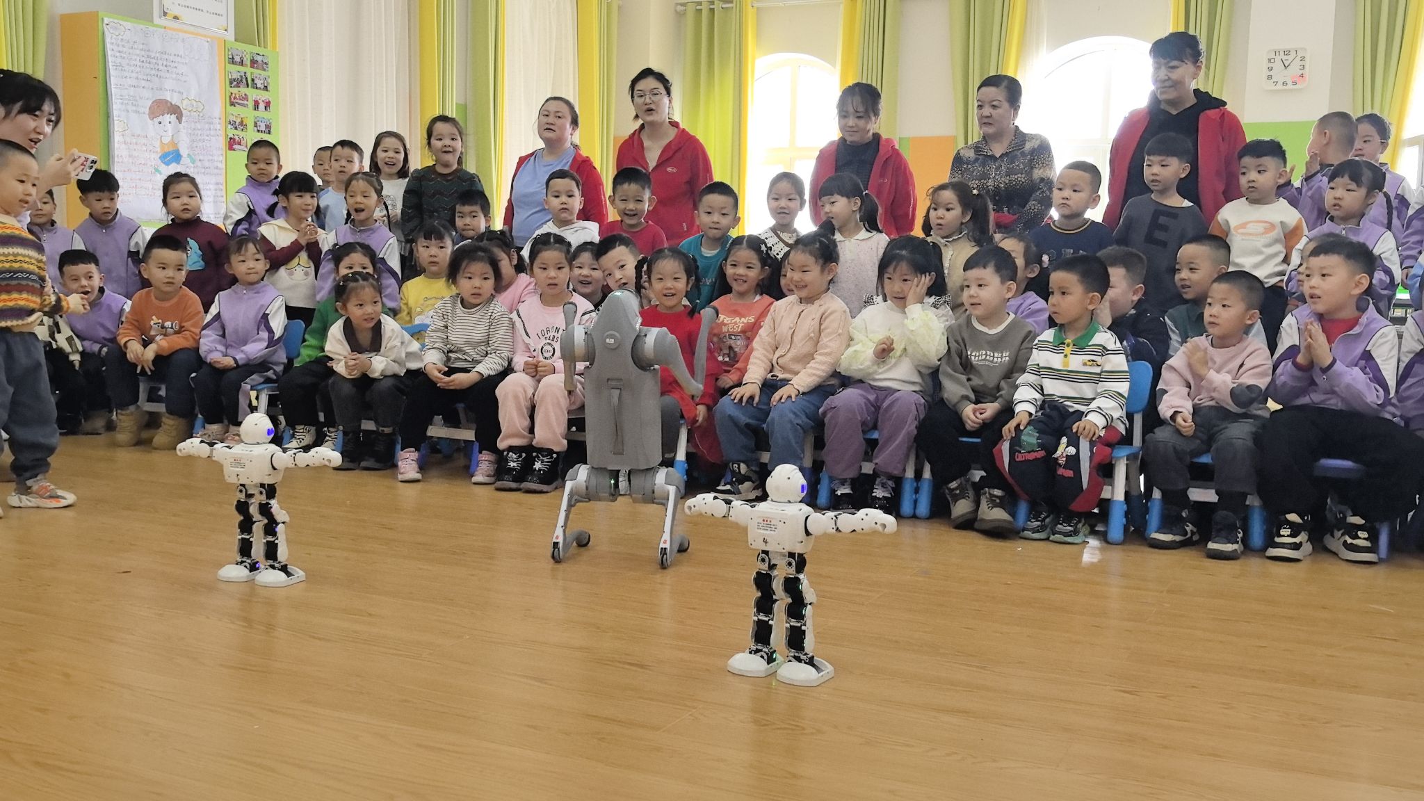 活動伊始,工作人員用生動有趣、通俗易懂的語言向第四幼兒園的小朋友們展示Go2“笨笨”機器狗、阿爾法機器人,伴隨著節奏歡快的音樂,“笨笨”機器狗向小朋友們比心、打招呼,阿爾法機器人則表演了倒立和仰臥。VR眼鏡互動體驗環節,工作人員為小朋友們佩戴VR眼鏡,絢爛真實的3D場景讓小朋友們驚嘆不已。