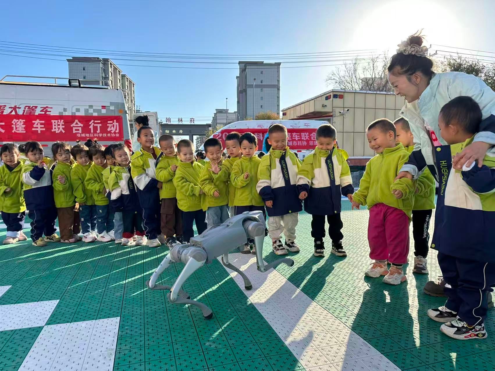 活動開始,機器狗表演瞬間吸引了孩子們的目光。靈活的機械四肢、精準的動作指令,引得孩子們陣陣驚嘆。大家紛紛圍上前去,近距離觀察機器狗的構造,踴躍向科普志愿者提問,探究機器狗背后的人工智能與機械原理。緊接著,機器人閃亮登場,它們整齊劃一地舞動著機械手臂,伴隨著歡快的音樂節奏,為孩子們帶來了一場精彩的舞蹈表演,將現場氣氛推向了高潮。此外,拼圖玩具和益智棋類也吸引孩子們踴躍參與。他們在動手拼搭中鍛煉空間思維,在棋類對弈中學習策略與合作,現場氣氛熱烈。