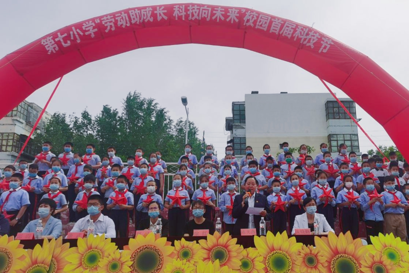 科技初心賦創新,助力勞動絢麗花。5月12日,克拉瑪依市第七小學全體師生共同迎來了首屆科技節開幕式。本屆科技節的主題是“勞動助成長,科技向未來”??萍脊濋_幕營造了濃厚的學科學、愛科學、用科學的校園氛圍。