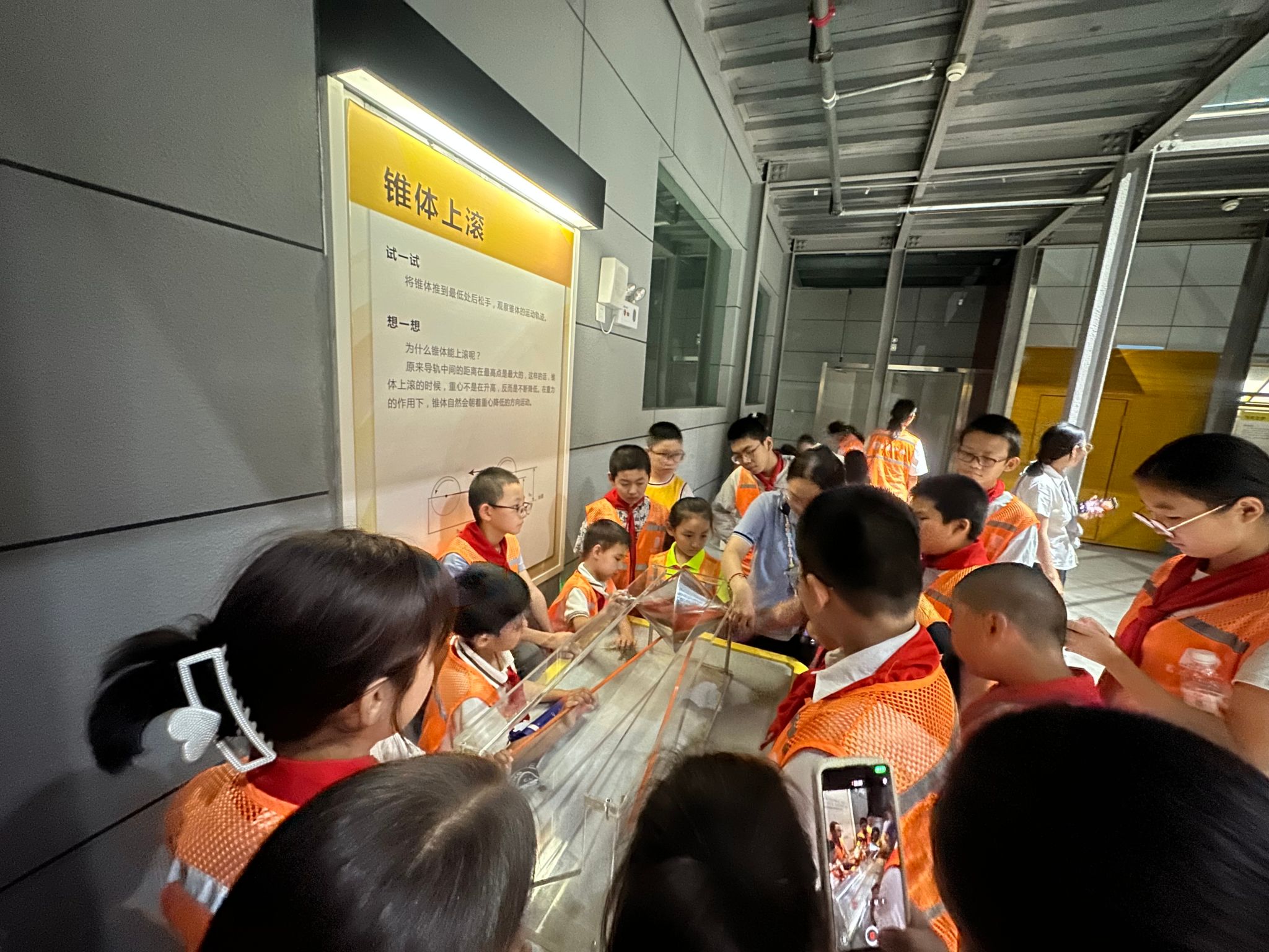 隨后,隊員們走進了克拉瑪依市科技館。在科技樂園和防震減災展廳,孩子們全面系統地學習了各類安全知識,進一步增強了自我保護意識。踏入神奇的“聲光世界”4D影院,五彩斑斕的光影、逼真的聲效,搭配上動感座椅,讓孩子們仿佛置身于奇幻的物理王國,盡情領略著科學的魅力。五年級的柳浩宇興奮地高呼:“太酷了!感覺像在太空遨游!”在“發現與啟迪”展廳,齒輪、杠桿等機械裝置激起了孩子們強烈的好奇心。大家紛紛動手操作,在實踐中感受著科學原理的奇妙之處。