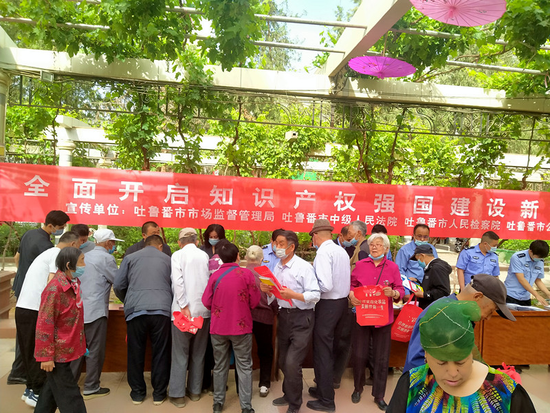 為深入貫徹落實習近平總書記關(guān)于知識產(chǎn)權(quán)工作的重要指示論述,增強全社會尊重和保護知識產(chǎn)權(quán)的意識,加大知識產(chǎn)權(quán)保護宣傳力度,堅決打擊侵權(quán)盜版行為,4月26日,吐魯番市科協(xié)聯(lián)合市場監(jiān)督管理局、市公安局、市檢察院、市法院在高昌區(qū)青年中路南側(cè)開展“全面開啟知識產(chǎn)權(quán)強國建設(shè)新征程”為主題的宣傳活動。