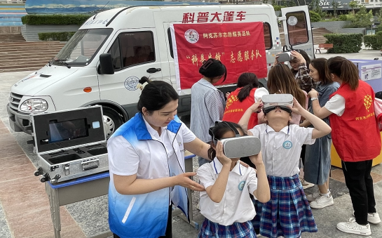 活動(dòng)現(xiàn)場(chǎng),科技志愿者指導(dǎo)群眾進(jìn)行VR互動(dòng)體驗(yàn),帶領(lǐng)群眾體驗(yàn)觀看VR科普設(shè)備影像,探索科技發(fā)展的奧秘,大家通過3D特效身臨其境地感受到了科學(xué)技術(shù)的發(fā)展,現(xiàn)場(chǎng)群眾直呼“VR體驗(yàn)太真實(shí)了!”