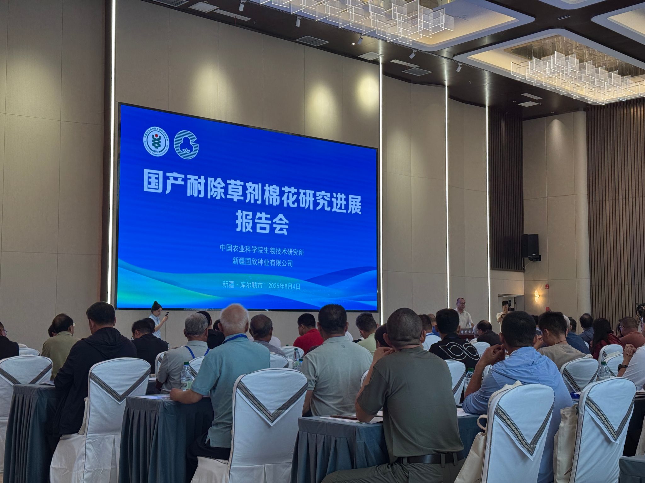 8月4日下午,“國產耐除草劑棉花研究進展報告會暨現場觀摩會”在新疆庫爾勒市巴州種業創新園舉行。本次會議由中國農業科學院生物技術研究所、新疆國欣種業有限公司聯合主辦。