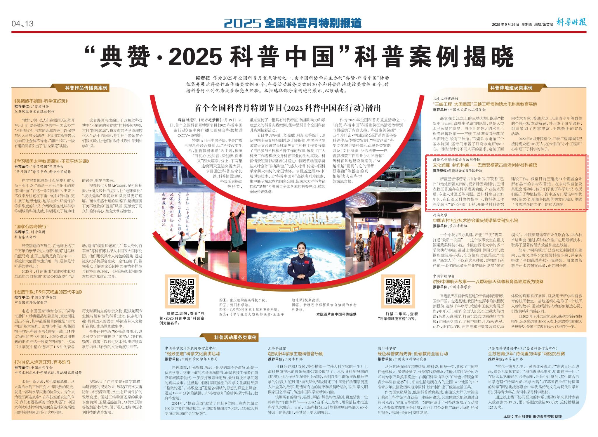 “文化潤疆鄉約科普——巴音郭楞蒙古自治州鄉村科普館”案例的脫穎而出,源于其在基層科普陣地建設中構建的特色創新模式,更離不開“三個一百”工程的框架引領與資源賦能——從理念落地為實體、從單點延伸至全域,鄉村科普館逐步成長為服務農牧民、助力鄉村振興、促進民族團結的重要陣地,探索出一條以科普為紐帶的基層治理新路徑。一是構建“全域覆蓋+精準服務”網絡體系。巴州統籌建成81個鄉村科普館,實現重點鄉鎮全覆蓋,并緊扣各地產業特色提供精準服務。二是推動“文化潤疆+科普惠民”深度融合。案例創新開展“科普+非遺”“科普+文藝”等特色活動,讓科學知識以群眾喜聞樂見的方式深入人心。三是打造“線上+線下”立體服務模式。巴州科協依托“科普巴州”等新媒體平臺推送科普內容,同時組建科普志愿服務隊,深入田間地頭、鄉鎮社區開展服務,讓科普突破時空限制,實現“零距離”惠民。