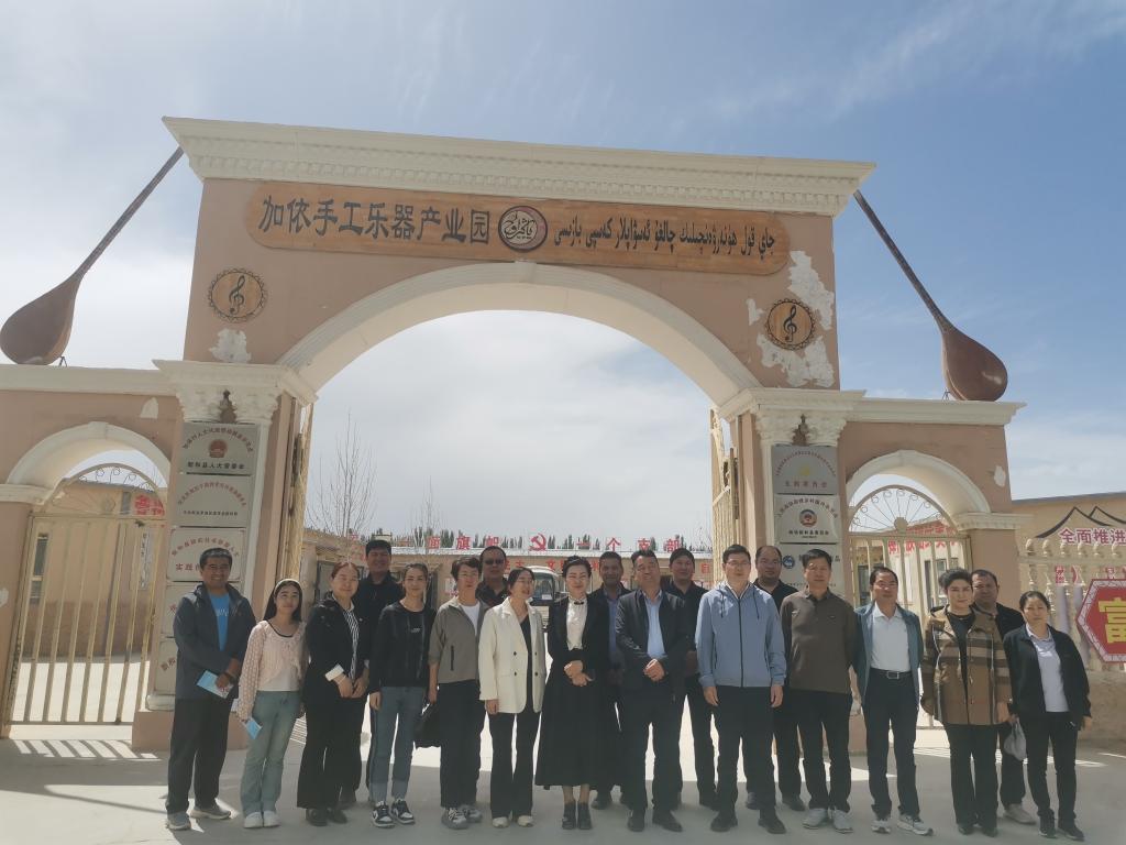 考察組一行在阿克蘇地區(qū)科協(xié)主席宏千姆·居曼、新和縣科協(xié)主席李燕的陪同下,參觀新和縣科普示范基地加依村手工樂器產(chǎn)業(yè)園,了解加依村的民族樂器、非遺文化、非遺傳承人等情況。