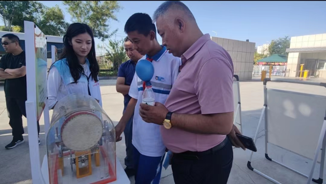 活動中,工作人員還向參觀人員展示了本單位特色“一月一主題科普”科學小實驗,結合工作人員展示、同學們自行操作再糾正并講解原理的方式,增加了趣味性。通過擺放三維立體展板、懸掛標語橫幅、發放宣傳資料等豐富多彩的方式,受到了熱烈歡迎。
